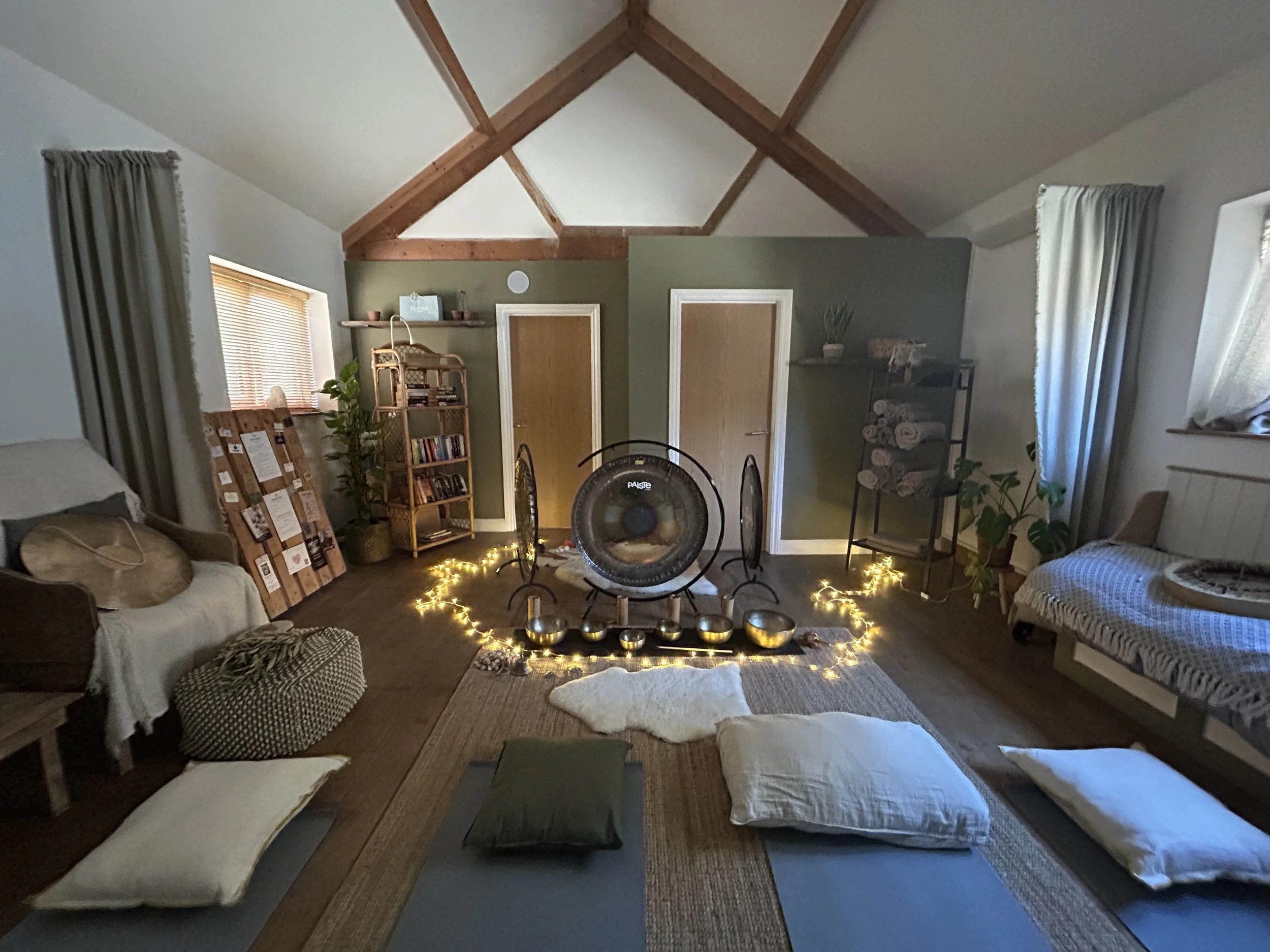 Experience the deep relaxation of our bi-weekly Gong Baths in the peaceful surroundings of The Calm Barn, Trent.